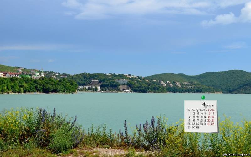 Обои на рабочий стол с календарём на июль 2013 "Озеро Абрау". Выбрать свой размер из 1920х1200 1920х1080 1680х1050 1366х768 1280х1024 1280х800 1024х768 и скачать бесплатно по ссылке в комментарии.