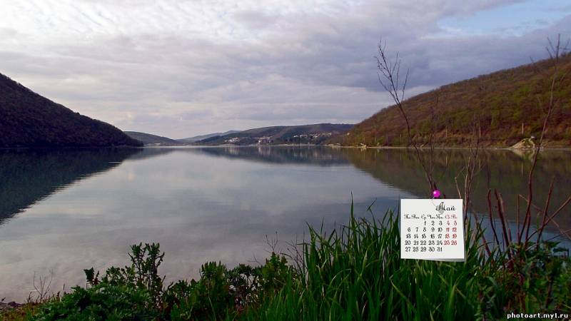 Обои на рабочий стол с календарём на май 2013 "Весеннее озеро", озеро Абрау в Абрау-Дюрсо, Краснодарский край, Россия. Выбрать свой размер из 1920х1080 1680х1050 1366х768 1280х1024 или оригинал 2840х1600 и скачать бесплатно по ссылке в комментарии.