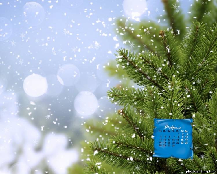 Календарь обои на рабочий стол "Февраль 2013. Зимняя ёлка". Скачать бесплатно все размеры 1280х1024 1366х768 1680х1050 1920х1080 по ссылке внизу, в комментарии.