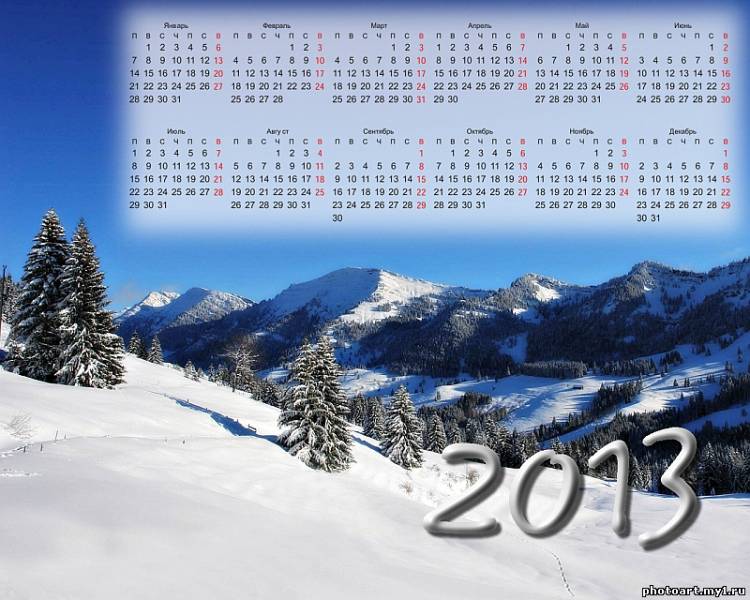 Главная » Фотоальбом » Календари » 03_Календарь 2013 на рабочий стол "Зимний пейзаж"