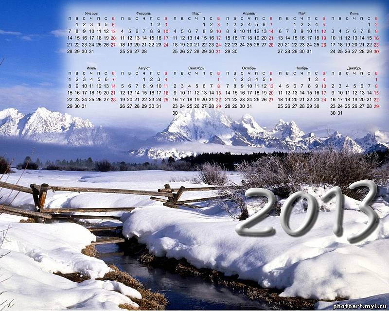 Главная » Фотоальбом » Календари » 04_Календарь 2013 на рабочий стол "Зимний пейзаж"