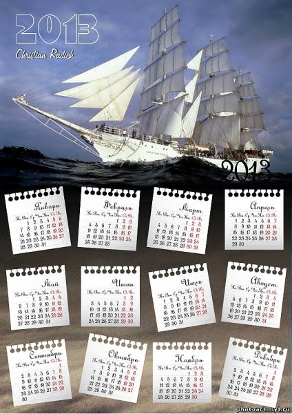 Скачать бесплатно календарь на 2013 год "Christian Radich" фрегат, парусник. Вертикальный, в большом разрешении 2480х3508 для печати в формате А4 или качественной печати плаката.