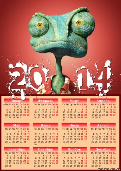 Календарь на 2014 год Ринго. Вертикальный, большой размер 4280х3508 для печати в формате А4 и качественной печати плаката.