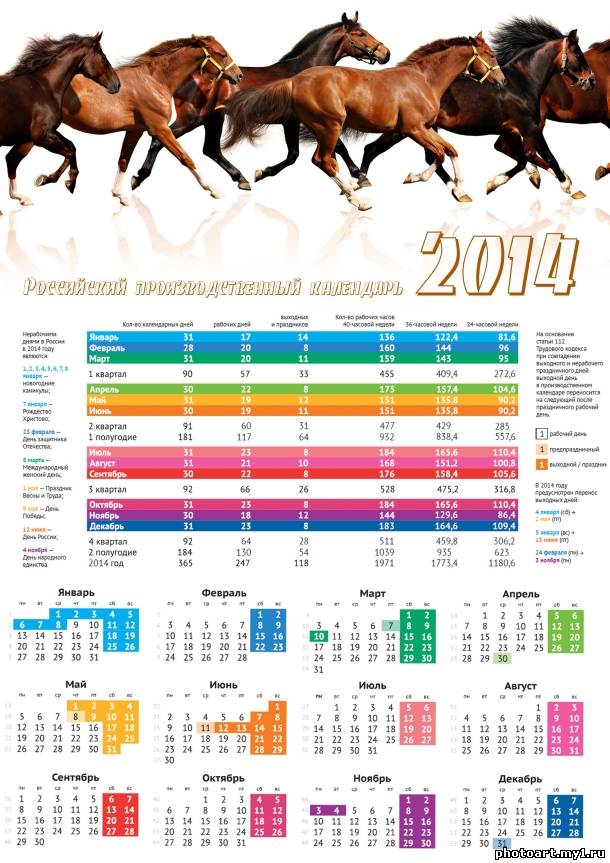 Российский производственный календарь на 2014 год. Скачать бесплатно и без регистрации, большой размер 2480х3508, для печати в формате А4 или качественной печати плаката в формате А2 А3.