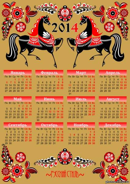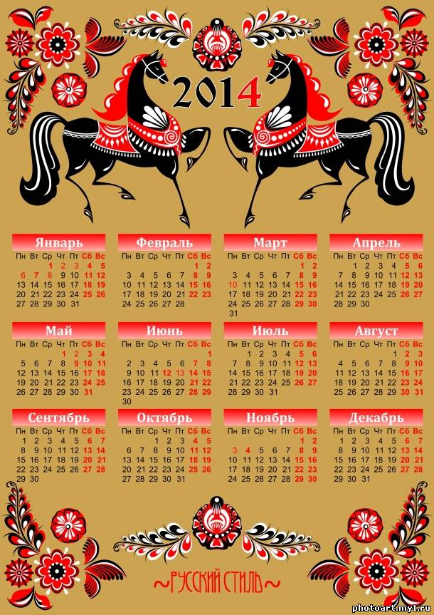 Календарь 2014 Русский Стиль