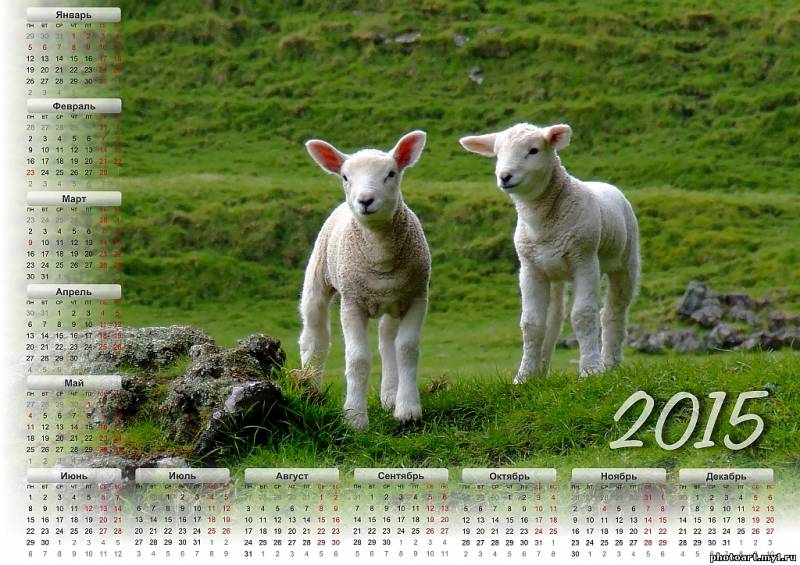 Календарь на 2015 год "Год козы, Год овцы" горизонтальный, большой размер 3508х2480 для качественной печати плаката в формате А4 А3 А2. Ссылка для скачивания в комментарии внизу.